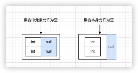 - 第一种情况: 集合本身不能为null, 但是其中的元素可能是null