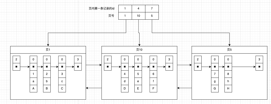 - 数据页之间,通过字段a的大小顺序组成一个双向链表