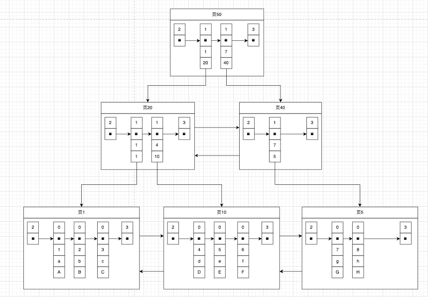 - B+树非叶子节点目录项使用字段a,字段b,页号组成。